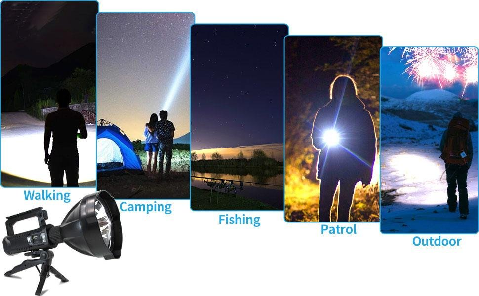 LED spotlight flashlight provides reliable and convenient lighting tools, very suitable for ships, seas, hiking, hunting, outdoor camping, night fishing, walking dogs, car maintenance, work and other conditions. You will find that this spotlight flash will be your ideal companion.